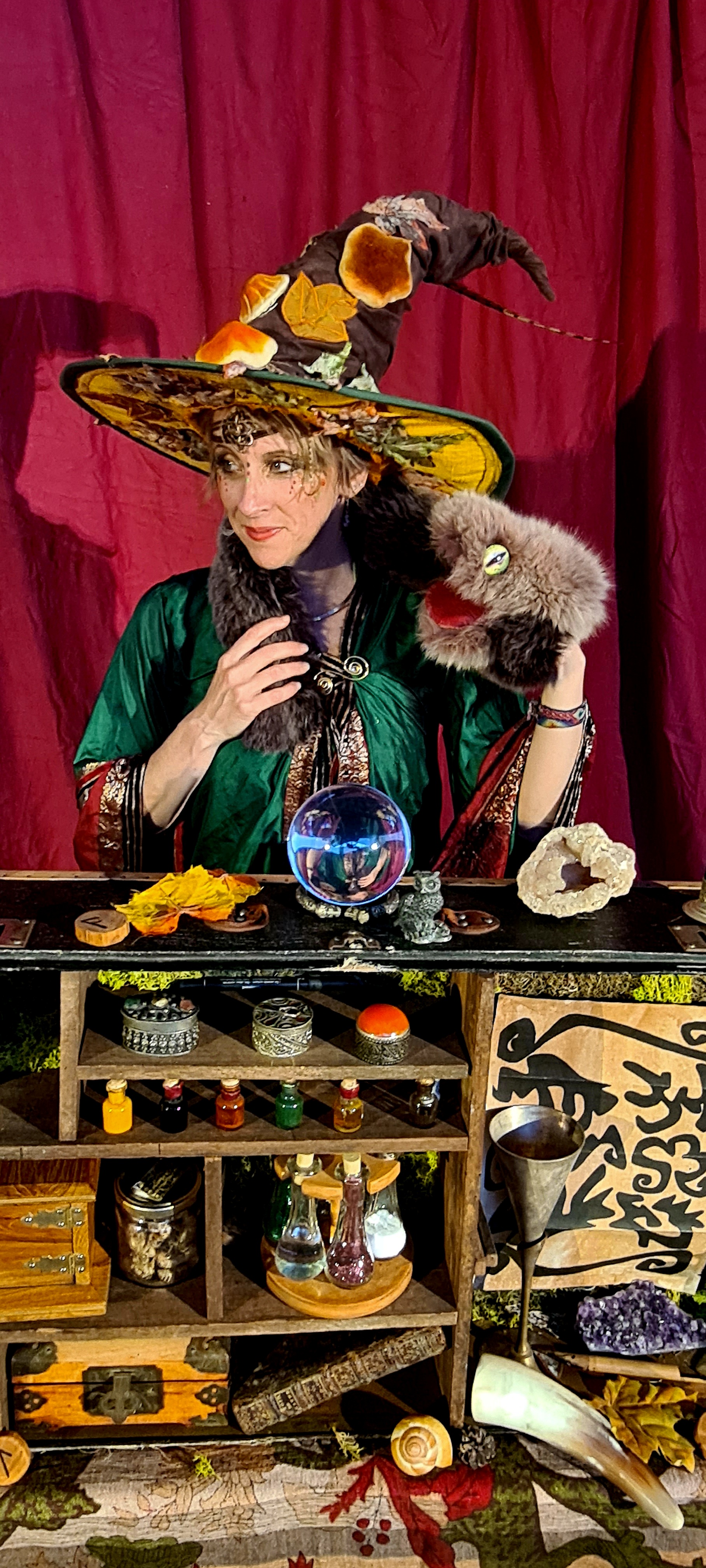 Dans un décor automnal entourée de ses vieux grimoires